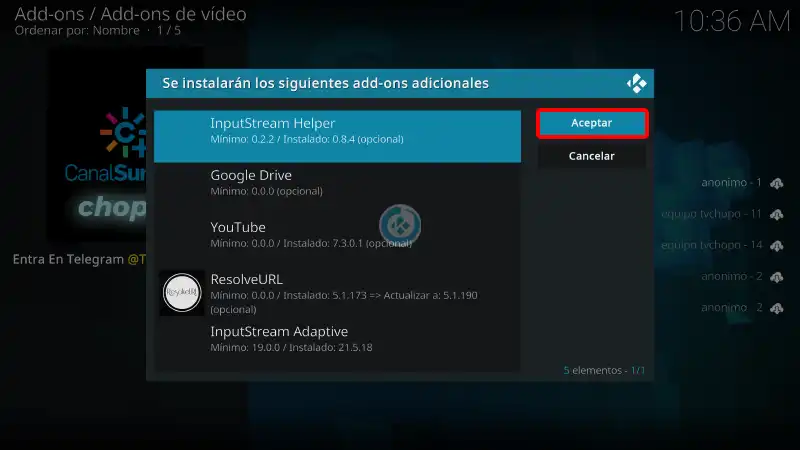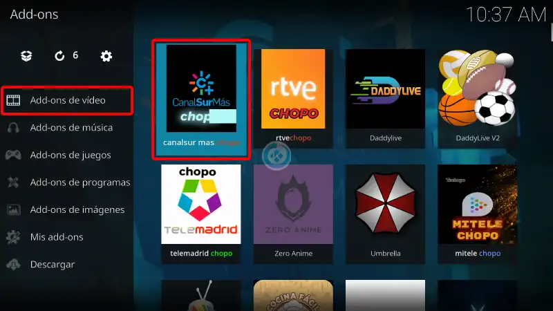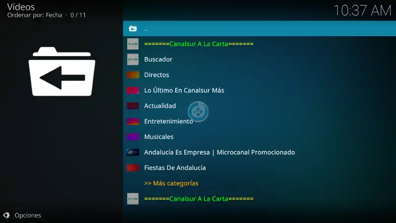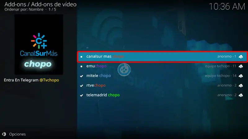 20. Regresamos al menú Addons > Addon de video > canalsur mas chopo
